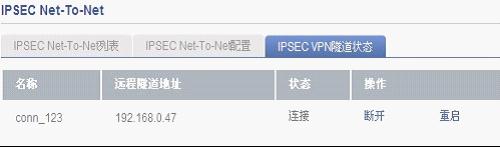 通過以上設(shè)置便可成功建立IPSEC點對網(wǎng)的VPN。